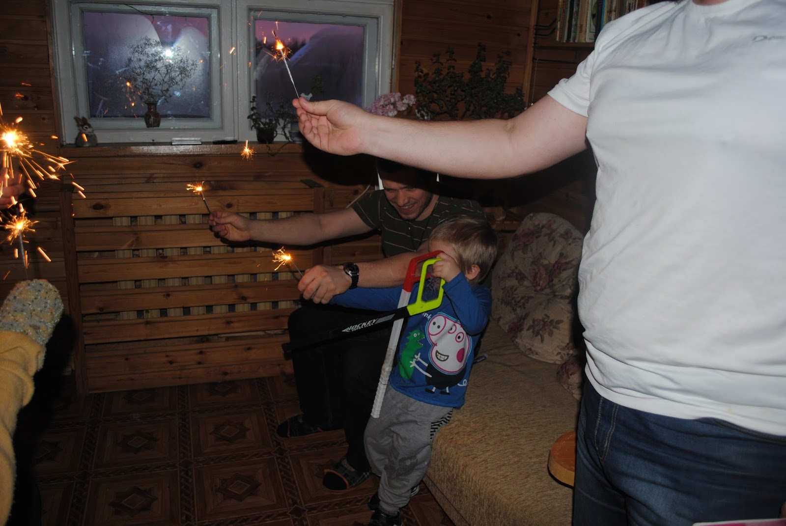 *Фото парашютиков, которые мы запускали в небо, у меня отсутствуют. Они были заменены фотографиями, как мы в доме зажигали бенгальские огни.